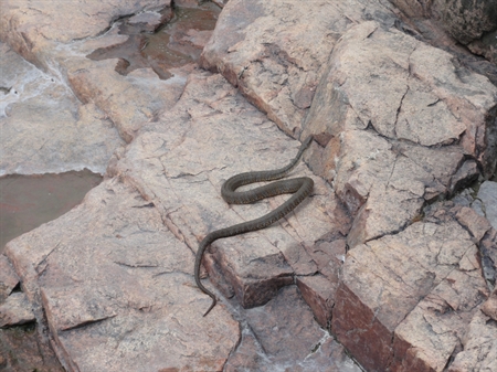 کنار جاده کنار رودخانه توقف کردیم. روی صخره ای کنار رودخانه نشستم و در فکر اینکه پایم را به آب بزنم بودم که ناگهان ۲ متر آن طرف تر چشمم به یک مار افتاد که آرام روی سنگها می لغزید و نیشش را نشانم میداد . انگار هشداری بود که به حریمش تجاوز کرده ایم . آرام و بی صدا به سمت ماشین برگشتیم در حالی که مار مابین سنگها ناپدید میشد.
