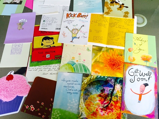 دوستان از ایالتهای مختلف برایم کارت پستال و گل میفرستاند. دکتر زی که یک نورولوژیس هندی بود همراه ما منشی بزش و نینا چیف رزیدنت دوره خودم از راه دور به دیدنم آمدند و کلیپی از دکتر ردی که برایم ضبط کرده بود گذاشتند. و یک سبد میوه و گل آوردند،